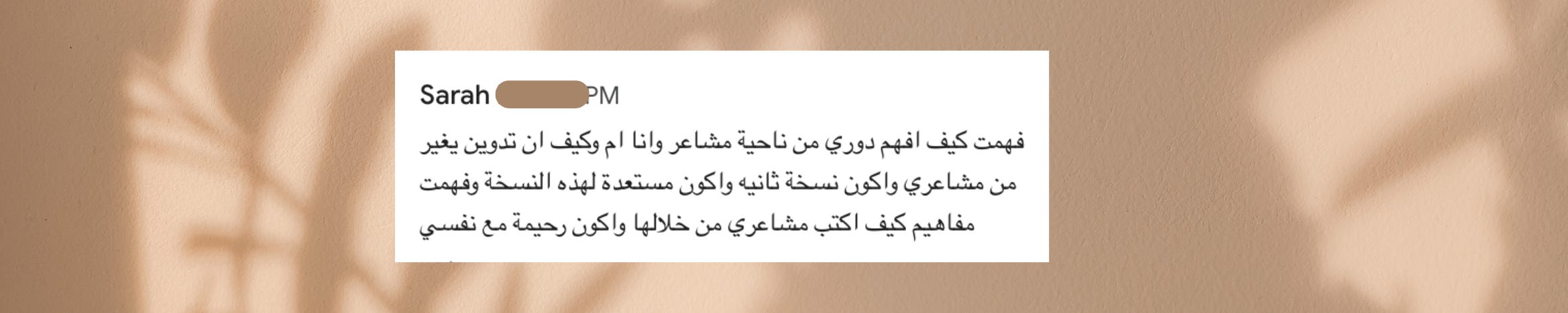 من أكثر الأمور الي بتساعدك في حياتك الشخصية هي التدوين و المراجعة الذاتية! قبل كنت أقول أن كل شخص "ناجح" يدون و يكتب بس اليوم أقول النجاح داخلي بحت! و السلام الداخلي هو النجاح الحقيقي و الوحيد. إذا كنت في حالة سكينة و هدوء كل شي تشوفينه بوضوح، أما لو كنتِ متوترة شلون بتشوفين؟ بيكون في ضباب في رؤيتك!